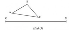 Đố: Xem hình 51. So sánh AB + BC + AC với OM bằng mắt rồi kiểm tra bằng dụng cụ.
