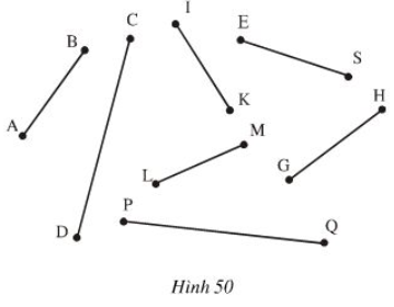 Với compa, hãy so sánh các đoạn thẳng trong hình 50 rồi đánh cùng một dấu cho các đoạn thẳng bằng nhau.