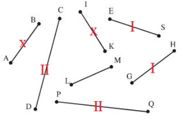 (Chúng ta có 3 cặp đoạn thẳng bằng nhau: AB = IK; ES = GH; CD = PQ)