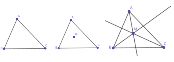 a) vẽ tam giác ABC, lấy điểm M nằm trong tam giác, tiếp đó vẽ các tia AM, BM,CM.