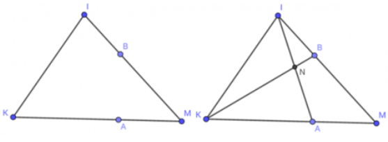 b) vẽ tam giác IKM, lấy điểm A nằm trên cạnh KM, điểm B nằm cạnh IM. Vẽ giao điểm N của hai đoạn thẳng IA, KB.