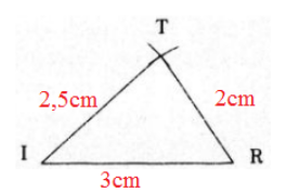 Vẽ đoạn thẳng IR dài 3cm. Vẽ một điểm T sao cho TI=2,5cm,TR=2cm. Vẽ ΔTIR