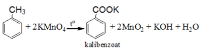 (2) dung dịch kali pemanganat; do toluen có nhóm -CH3 nên bị kali pemanganat oxi hóa thành kali benzoat. (phản ứng oxi hóa)