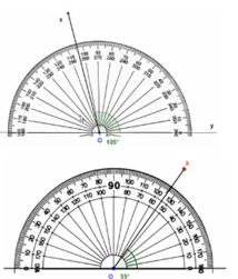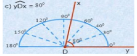 - Đặt thước đo góc sao cho tâm thước trùng với góc O của tia Ox và tia Ox đi qua vạch 00