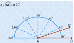 a) Đỉnh của góc là A, một cạnh là AB, cần vẽ tia AC.