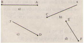 Vẽ góc cho biết một cạnh và số đo góc đó trong bốn trường hợp sau (h.35)