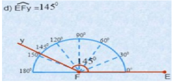 d) Đỉnh của góc là F, Một cạnh là EF, cần vẽ tia Fy.
