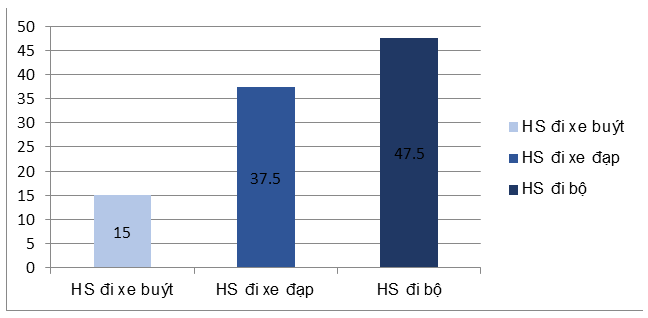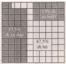 Số học sinh đi xe đạp chiếm: \[\frac{15}{40}=\frac{7.5}{20}=\frac{7,5.5}{20.5}=\frac{37,5}{100}=37,5\]%