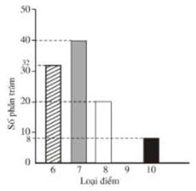 b) Loại điểm cao nhất là 7 chiếm 40% (cột cao nhất)