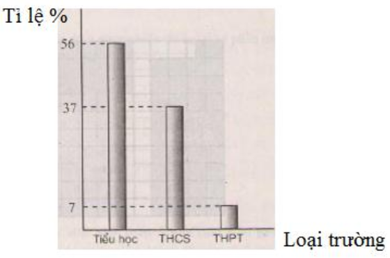 Năm học 1998 – 1999, cả nước ta có 13076 trường tiểu học, 8583 trường THCS và 1641 trường THPT. Dựng biểu đồ cột biểu diễn tỉ số phần trăm các loại trường nói trên trong hệ thống Giáo dục phổ thông của Việt Nam.