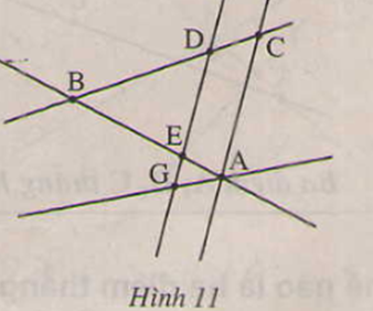 a. Các bộ ba điểm thẳng hàng trong hình 11(SGK) là: A,E,B; B,D,C; D,E,G.