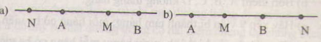 b, Điểm B nằm giữa A và N; điểm M nằm giữa hai điểm A và B.