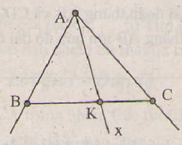 Lấy ba điểm không thẳng hàng A,B,C vẽ hai tia AB và AC, sau đó vẽ tia Ax cắt đoạn BC tại điểm K nằm giữa hai điểm B và C.