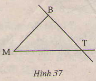 Vẽ hình 37 vào vở rồi tô đoạn thẳng BM, tia MT, đường thẳng BT bằng ba màu khác nhau.