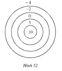 Trong trò chơi bắn bi vào các hình tròn vẽ trên mặt đất (h.52), bạn Sơn bắn được ba viên điểm 5, một viên điểm 0 và hai viên điểm -2; bạn Dũng bắn được hai viên điểm 10, một viên điểm -2 và ba viên điểm -4. Hỏi bạn nào được điểm cao hơn?