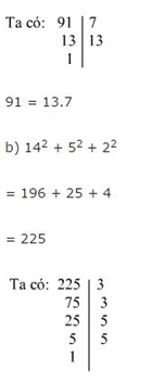 c) b = 5 .7 .11 + 13 . 17; b ∉ P vì b là số chẵn (Tổng của 2 số lẻ)