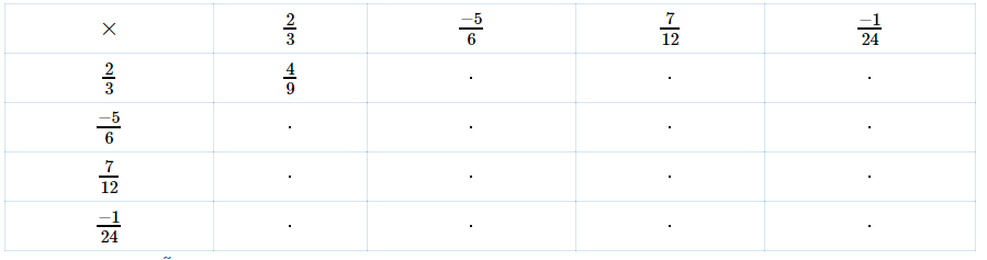 Hoàn thành bảng nhân sau (chú ý rút ngắn gọn nếu có thể):