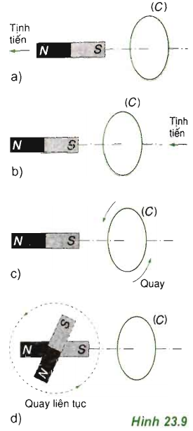 d) Nam châm quay liên tục (Hình 23.9d)