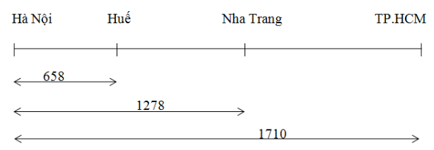 - Quãng đường Huế - Nha Trang là: 1278 - 658 = 620 (km)